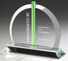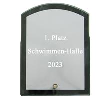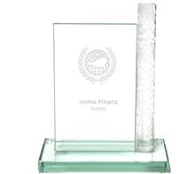 Glastrophäe mit Silberrand für ihre individuelle Widmungsgravur.