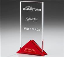 Glastrophäe 2-färbig "Rot-Weiß" für ihre individuelle Widmungsgravur.
