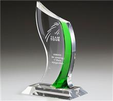 Glastrophäe mit Muschelbruchrand in  4 Größen für ihre persönliche Widmungsgravur.