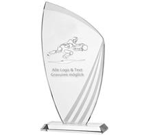 Glastrophäe mit ätzweißem Design für ihre individuelle Widmungsgravur.