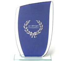 Glastrophäe in "BLAU" für die direkte Laser-Glasgravur.