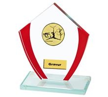 Günstige Glastrophäe mit roten Zierelementen inkl. Motiv Ø50mm