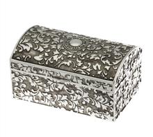 Schmuckdose "Truhe verziert" mit Schanier, versilbert und anlaufgeschützt - kein putzen!