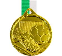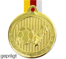 Geprägte Medaille "DRIBBELN" - Motiv FUSSBALL und Band 2,2cm Ihrer Wahl.
