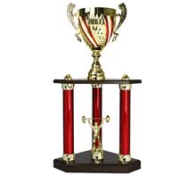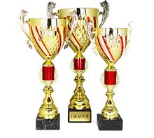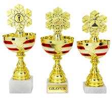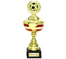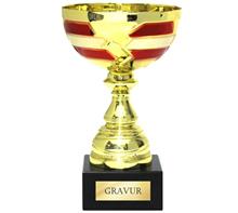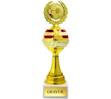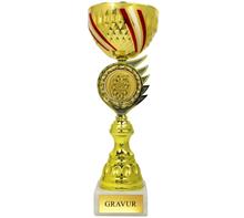 Motiv-Trophäe inkl. Motiv "ROT-WEISS-ROT" mit Motiv Ø25mm "Sportmotiv Folie Färbig" oder  "Metall-Motiv Gold"