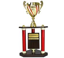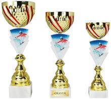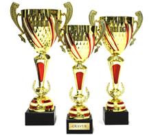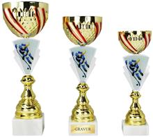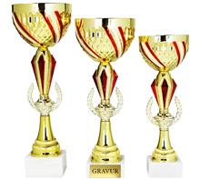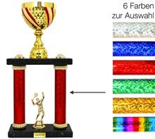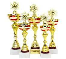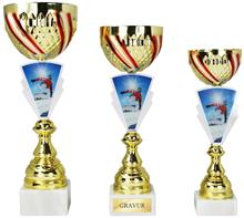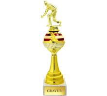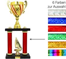 Metallkorpus Rot-Weiss-Rot bemalt, PVC-Rohre in Rot,Blau,Grün,Gold,Silber,Rainbow, schwarze Marmorsockel und plastische, goldene Figur. Viele Sportarten lieferbar.