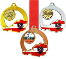 Motiv-Trophäe inkl. Medaille  "ÖSTERREICH" mit Motiv Ø25mm "Sportmotiv Folie Färbig" oder  "Metall-Motiv Gold"