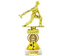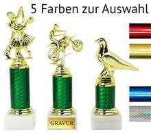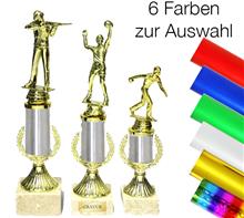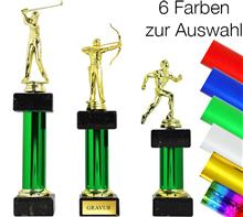 Trophäe in 6 Farben inkl. plastische, goldener Figur für verschiedenen Sportarten.