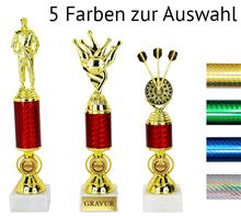 Trophäe mit Rohr in 6 Farben zur Auswahl und inkl. plastischer Sport-Figur ihrer Wahl.