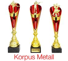 Metallkorpus Rot-Weiss-Rot bemalt, PVC-Rohre in Rot,Blau,Grün,Gold,Silber,Rainbow, schwarze Marmorsockel und plastische, goldene Figur. Viele Sportarten lieferbar.
