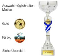 Pokal in Silber-Blau-Kombination inkl. Motiv Ø25mm "Sportmotiv Folie Färbig" oder  "Metall-Motiv Gold"