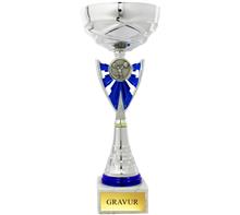 Moderner PVC-Pokal in Silber-Blau-Kombination inkl. Motiv Ø25mm