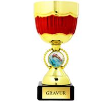 Kleiner, PVC-Pokal mit Henkel inkl. Motiv Ø25mm "Sportmotiv Folie Färbig" oder  "Metall-Motiv Gold"