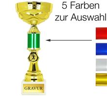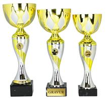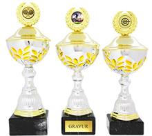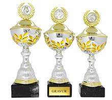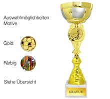 Pokal in Gold-Silber-Kombination inkl. Motiv Ø25mm "Sportmotiv Folie Färbig" oder  "Metall-Motiv Gold"