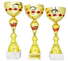 Henkelpokal in Gold-Rot-Kombination.