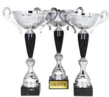 Henkelpokal in Silber-Schwarz-Kombination.