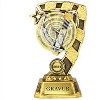 PVC-Trophäe in Gold-Silber-Bronze inkl. Motiv Ø70mm "BOGENSCHIEßEN" mit plastischer 3D Reliefstruktur.