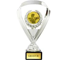 Motiv-Trophäe "Schleife Silber" inkl. Motivhalterung silber und Motiv Ø50mm "BOGENSPORT"