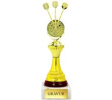 Goldene Trophäe kombiniert mit Figur "DARTSCHEIBE mit WURFPFEILEN".