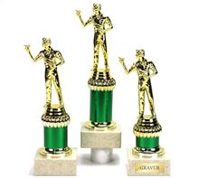 Trophäe mit grünem Rohr und plastischer Figur "DARTSPIELER".