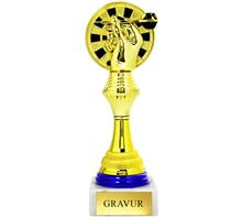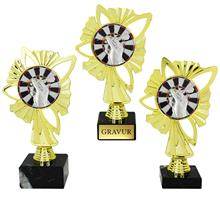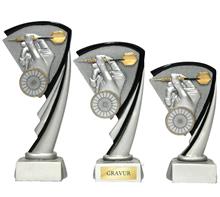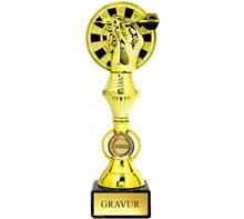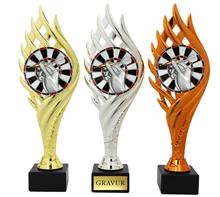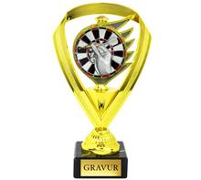 PVC-Trophäe in Gold-Silber-Bronze inkl. Motiv Ø70mm "DART" mit plastischer 3D Reliefstruktur.