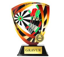 Trophäe inkl. plastischer Figur "Dartsymbol".