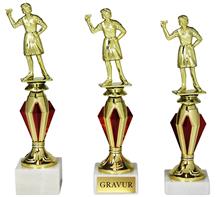 Trophäe mit rot-goldenem Konus und plastischer Figur "DARTSPIELERIN".