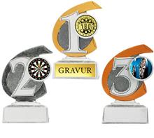 Trophäe mit 2-färbiger "DART" Figur inkl. Motiv Ø25mm "Jahreszahl".