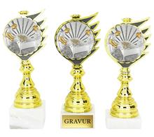 PVC-Trophäe in Gold-Silber-Bronze inkl. Motiv Ø70mm "WUZZELN" mit plastischer 3D Reliefstruktur.
