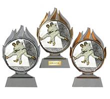 PVC-Trophäe in Gold-Silber-Bronze inkl. Motiv Ø70mm "JUDO" mit plastischer 3D Reliefstruktur.