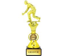 Trophäe in 5 Fraben inkl. goldener, plastischer Figur "Kegeln".