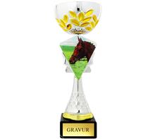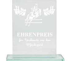 Glastrophäe inkl. "Pferdesportmotiv" im oberen Bereich direkt ins Glas gelasert.