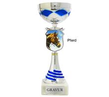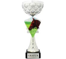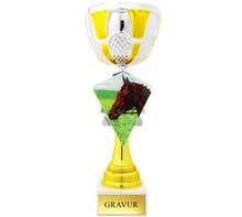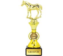 Säulentrophäe mit Henkelkorpus und Emblemhalterung mit färbigem Wappen "PFERDESPORT".