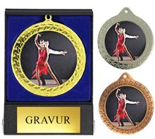 PVC-Trophäe in Gold-Silber-Bronze inkl. Motiv Ø70mm "TANZEN" mit plastischer 3D Reliefstruktur.