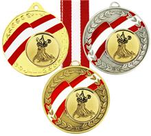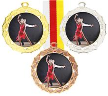 Medaille "ISAR" im modernen Design inkl. färbige Folie  "Tanzsport"  Ø50mm und Band 2,2cm Ihrer Wahl.